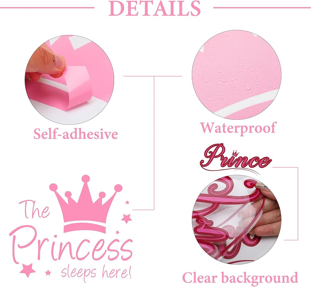 • ما تحصل عليه: تحتوي الحزمة على ملصق واحد للأمير نوم هنا وملصقات باب الأمير ، والتي يمكن أن تلبي احتياجات منزلك. إذا كانت لديك أي مشاكل بعد تلقي المنتج ، فلا تتردد في الاتصال بنا