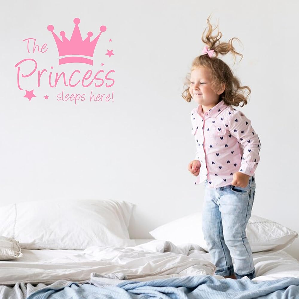 Pink Princess Sleep هنا شارات جدار الفينيل للفتيات غرفة نوم مقاومة للماء.