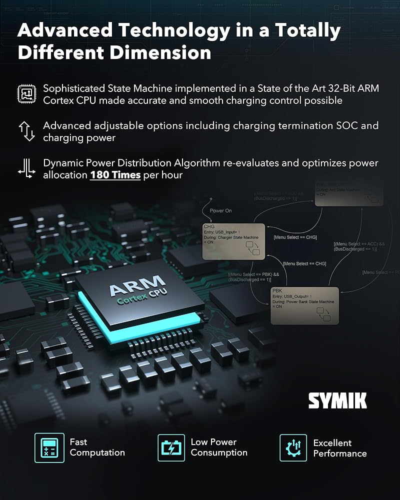 التكنولوجيا المتقدمة في بُعد مختلف تمامًا: جعلت آلة الحالة المتطورة التي تم تنفيذها في وحدة المعالجة المركزية ARM 32bit ARM بالتحكم الدقيق والسلس. الخوارزمية الذكية قادرة على توزيع الطاقة ديناميكيًا بين قنوات الشاحن بحيث تكون هناك حاجة إلى الحد الأدنى لوقت الشحن في ظروف مصدر الطاقة المحدودة