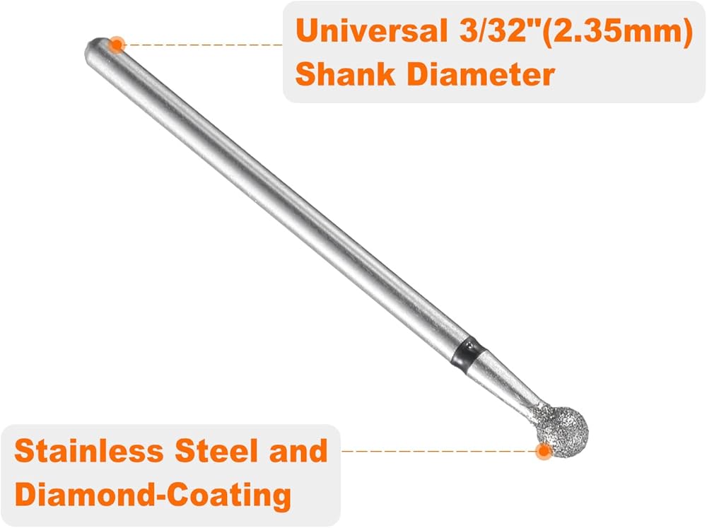 Material - This grinding bit is made of stainless steel, which has excellent heat and corrosion resistance, and is covered with a sharply diamond particle coating that will not fall off or deform due to repeated use