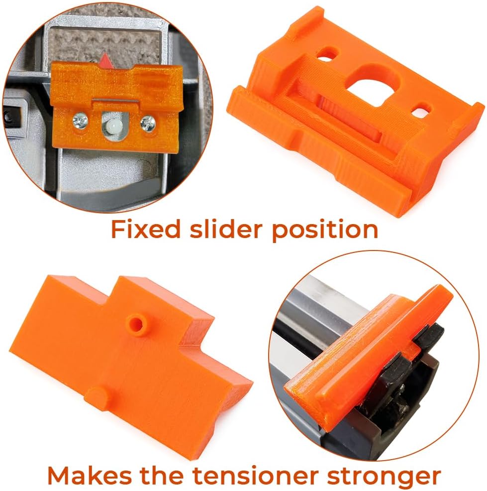 Improvements: Eliminates gaps between rails and fence; reduces wobble at the back of the fence; makes the tensioner stronger.