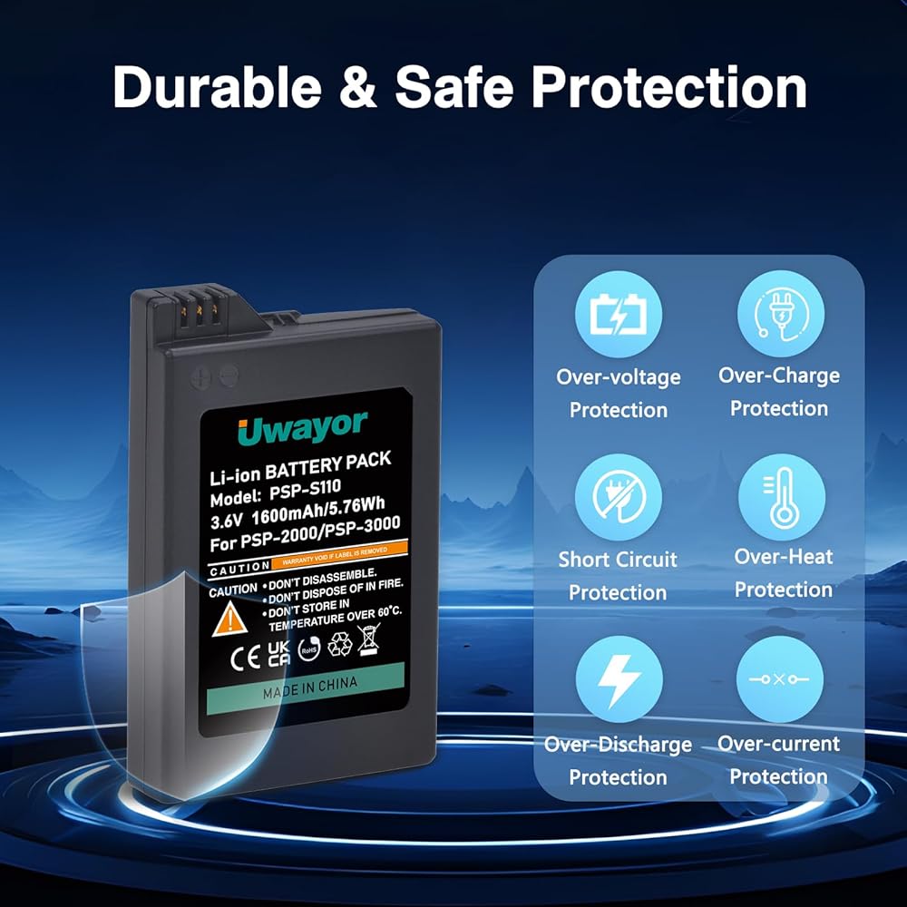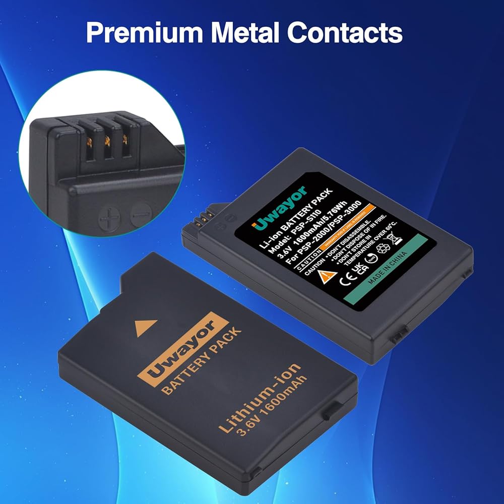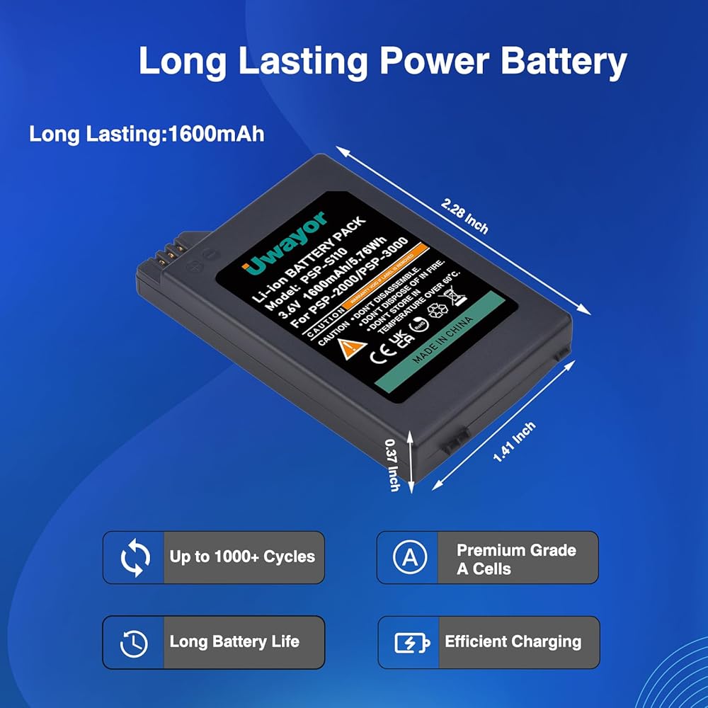 【الحماية الآمنة】 مصنوعة من خلايا البطارية من الدرجة A ، طويلة الأمد ودائمة. شحن عالي السرعة ، عالي الكفاءة ، والرقائق الدقيقة المدمجة لمنع PSP 2000/3000 من الزائد والارتفاع درجة الحرارة والدائرة القصيرة. مما سيساعد على إطالة عمر البطارية