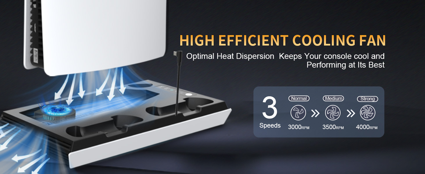 مراوح التبريد القابلة للتعديل و 4 محاور USB: مزودة بسرعات مروحة قابلة للتعديل (عالية ، متوسطة ، منخفضة) ، تتبدد محطة تبريد PS5 هذه الحرارة بكفاءة من وحدة التحكم الخاصة بك. تتيح لك مؤشرات LED المدمجة مراقبة سرعات المروحة والتحكم فيها بسهولة للأداء الأمثل. تعد مراكز USB الإضافية 4 على Dock مريحة للاعب الذي يمتلك مختلفًا من الأجهزة الطرفية للألعاب ، مثل التخزين الخارجي ، سماعات الرأس اللاسلكية ، وحدات التحكم في الأسلاك ، لا تحتاج إلى إزالة الإعداد الموجود أثناء استخدام حامل التبريد.