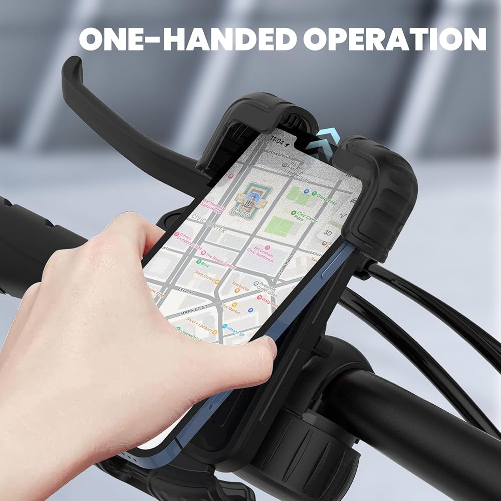 قفل وإصدار بيد واحدة: يسمح حامل هاتف الدراجة الخامس بعجلة العجلة بإجراء عملية سهلة بيد واحدة. ما عليك سوى الإمالة واضغط على الجزء السفلي لقفل هاتفك بشكل آمن ، واضغط مرة أخرى على إطلاقه. سريع ومريح وخالي من الإجهاد ، مع تصميم مضاد للانزلاق لمزيد من الأمان.