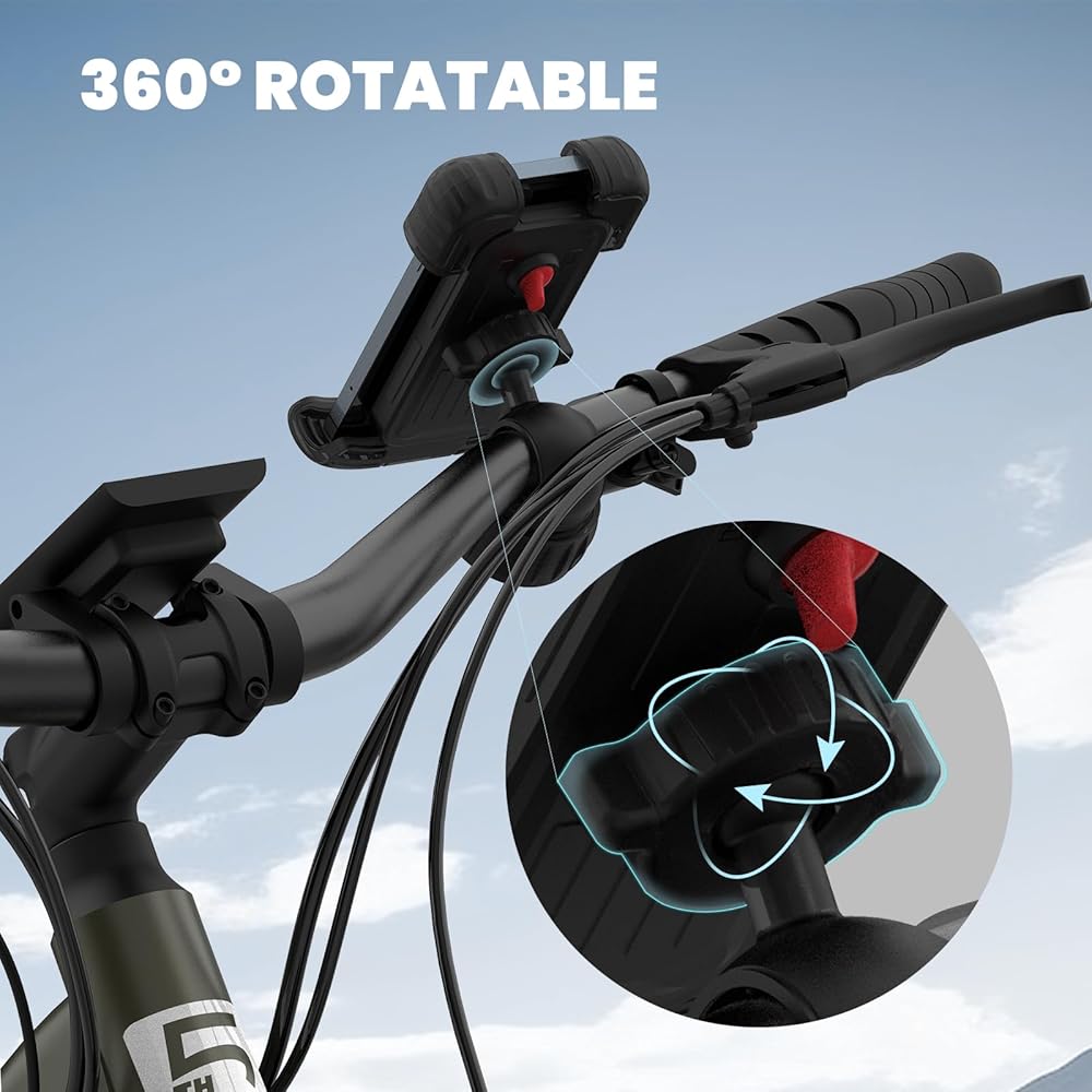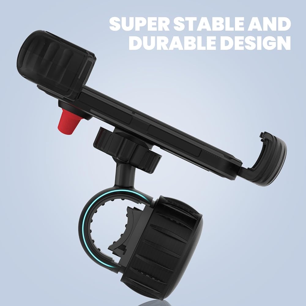 قبضة قوية وآمنة: يتميز حامل هاتف الدراجات النارية والدراجات بتصميم فريد يمسك بشكل آمن في كل ركن من أركان هاتفك ، مما يضمن سلامته حتى في التضاريس الوعرة. تذكر قفل مقطع الهاتف باستخدام المفتاح الأحمر على الظهر لمنع الحوادث أثناء الركوب!