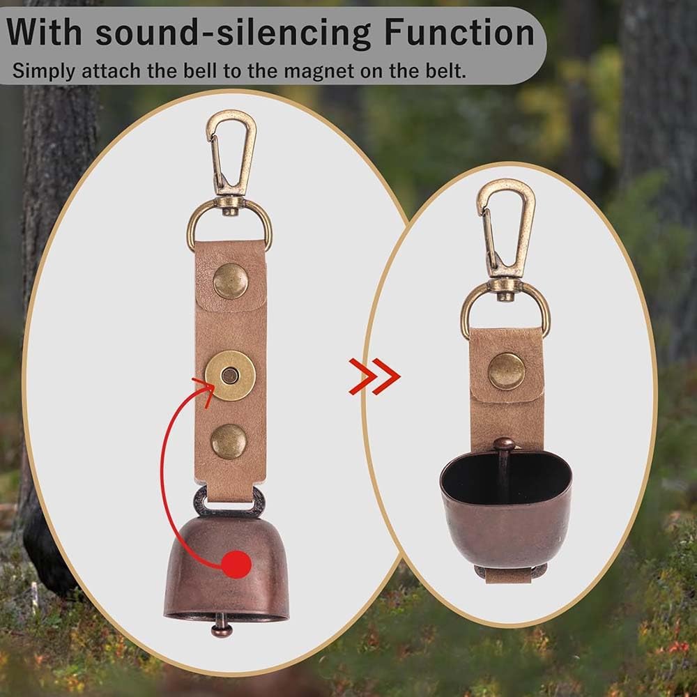 • 𝗜𝗻𝘀𝘁𝗮𝗻𝘁𝗹𝘆 𝗠𝘂𝘁𝗲:Instantly mute the bear bell when not needed by connecting it to the magnetic button. This feature allows you to enjoy the scenery without distractions, enhancing your hiking experience.