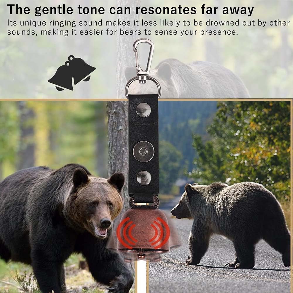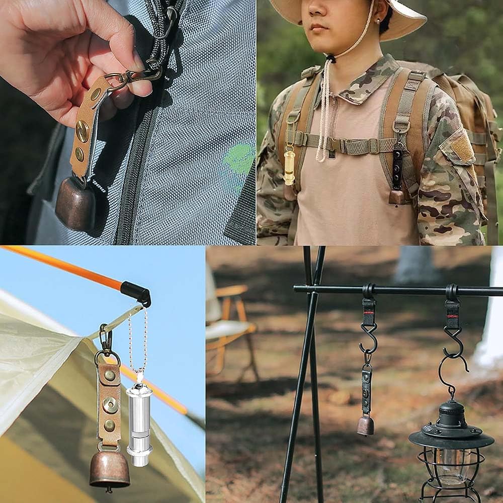 • 𝗘𝗮𝘀𝘆 𝘁𝗼 𝗰𝗮𝗿𝗿𝘆: Handy carabiner with a snap button design for easy attachment to backpacks, bikes, or secured to pants, belts, or shoulder straps. Ensures your bear bell is always within reach.