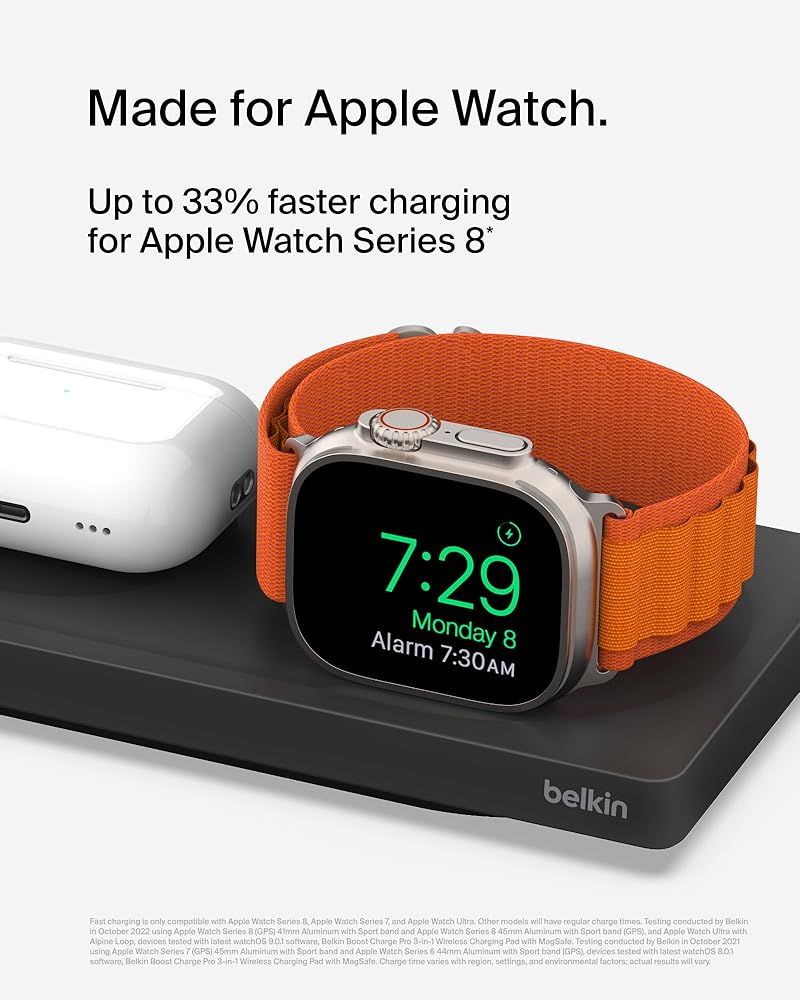 يدعم الشحن السريع من ابل: يدعم شاحن ماج سيف اللاسلكي تقنية الشحن السريع من ابل، ويشحن حتى 15 واط لهاتف ايفون