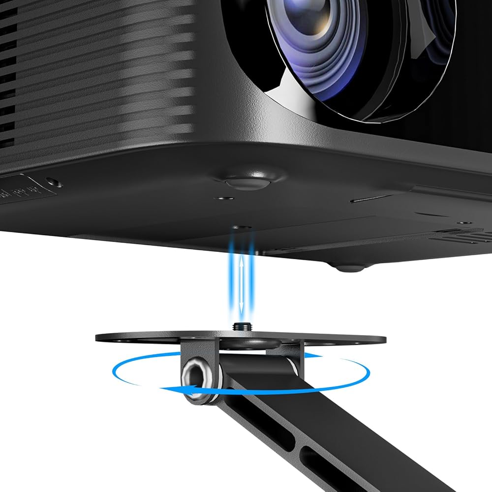 • [التناوب الكامل والتحكم الدقيق]: مع نطاق دوران 150 درجة ، يمكنك بسهولة وضع جهاز العرض للجدار أو السقف أو إسقاط الطاولة ، مما يتيح لك أقصى قدر من المرونة في أي إعداد.