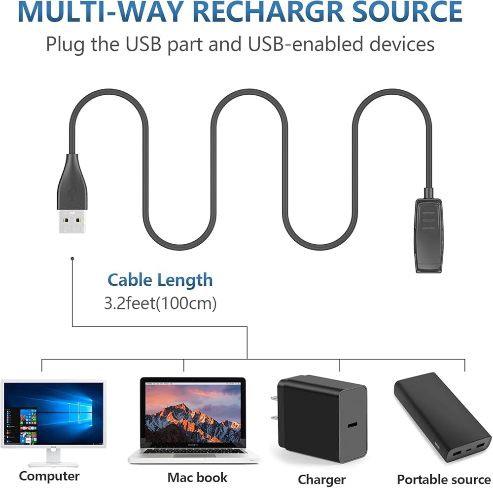-Easy to use: The cable length 3.3ft is sufficient for application in any occasions, connect the charging head with fitness traker, plug the USB head into USB port of charging machine, such as charging head, power bank, power socket,personal computer, Laptap and so on. You do not have to remove the Garmin Forerunner 35 64 230 235 630 645 735XT Watch case or bands when charging with this Garmin Forerunner 35 64 230 235 630 645 735XT Charger.