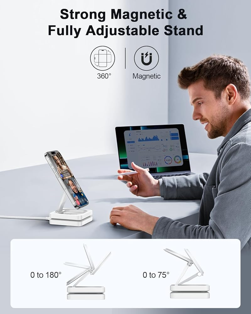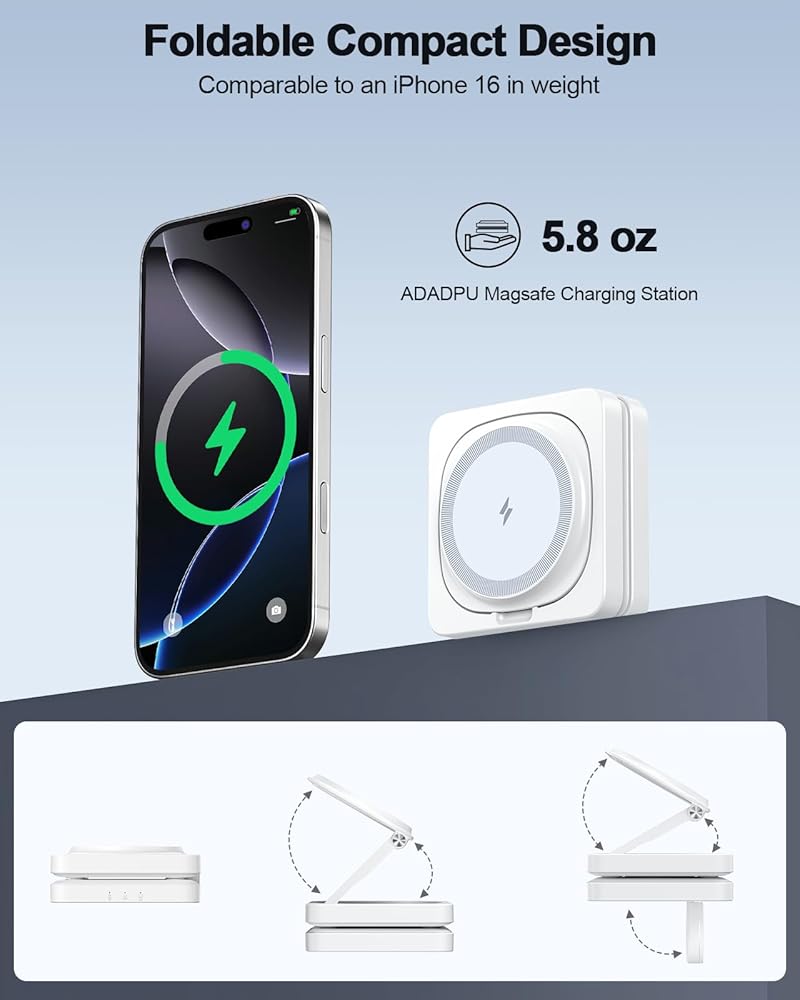 • مساحة محمولة وتوفير: تتميز بتصميم قابلة للطي ونحيف وفعال الفضاء مع هاتف قابل للتكيف مع الزاوية ووحدات الشحن ، تتيح لك محطة الشحن الآمنة من MAG إيجاد زاوية عرض أفضل. أيضا هذا الحجم المضغوط للشاحن القابل للطي يجعله مثاليًا مثل شاحن السفر. تضمن القاعدة الثقيلة الثقيلة والوسادة السفلية المضادة للانزلاق أنه يمكنك إزالة جهاز iPhone الخاص بك بيد واحدة دون أن ينطلق.