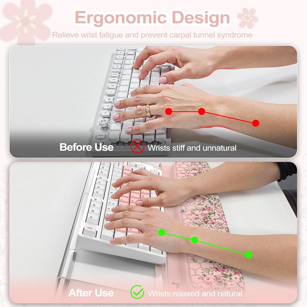 Comfortable:The soft wrist pad is made of memory foam to ensure good support for your wrist and relieve your typing fatigue.