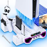 محطة تبريد لجهاز PS5/Slim/Pro - محطة شحن وحدة التحكم مع حامل LED لوحدة تحكم PlayStation 5 - شاحن لوحدة تحكم PS5، مجموعة ملحقات حامل التبريد - مروحة تبريد / حامل سماعة الرأس، أسود