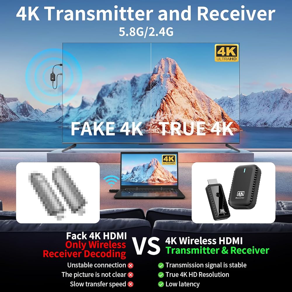 4K Wireless HDMI جهاز إرسال ومستقبل ، HDMI Wireless Extender ، المكونات والتشغيل ، مجموعة HDMI اللاسلكية الكاملة المحمولة ، الدعم 5G/2.4G لدفق الفيديو والصوت لرصد من مربع الكمبيوتر المحمول/التلفزيون