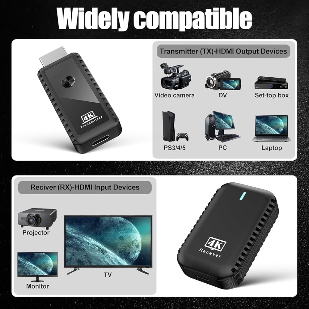 • 【4K Wireless HDMI أجهزة الإرسال والمستقبلات】 دعم لقدرات النسخ المتطابق على الشاشة وقدرات امتداد الشاشة ، مثل أجهزة الكمبيوتر المحمولة ، والكاميرات ، وصناديق أعلى الكابلات على HDTVs ، وجهاز العرض ، والشاشات لتجربة تطبيق متعددة الاستخدامات.