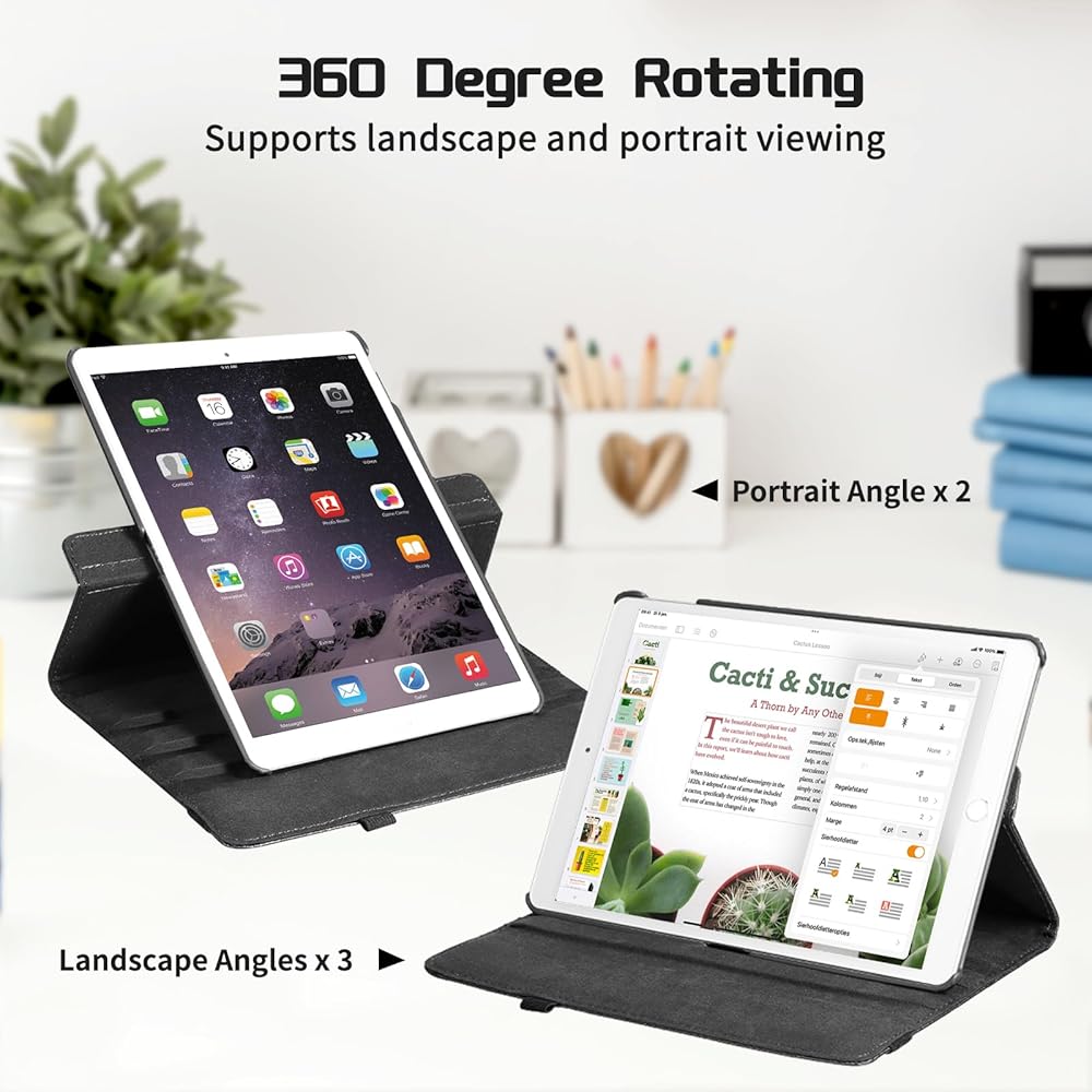 • 【ميزة 360 درجة】 360 درجة الدوران الدوار يتيح ل iPad تدوير كل من مرنة عموديا وأفقيا أثناء وجوده في الحالة.