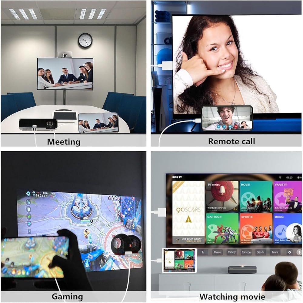 • This lightning to HDMI cable adapter Can easily connect iPhone,iPad to HDTV, monitor or projector with HDMI input. Connect the device to the big screen through this adapter, it is an ideal tool for watching TV shows, meetings, games, video calls or expanding the work area. In this way, you can not only enjoy the big screen, but also protect your eyes.then you can share videos/audios/pictures with your family and friends.