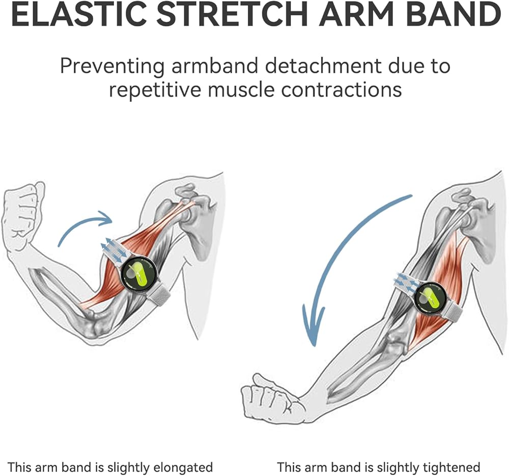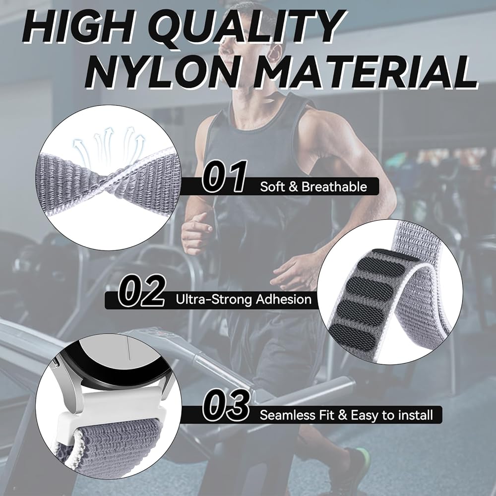 Elastic Material:Nylon Ankle/Arm Band Compatibel with Galaxy Watch 5 Ankle/arm Band for Men is Made of Nylon Material, Natural Heat Dissipation Material, Double Weave Band Wrist Friendly, Durable, Soft and Breathable,Lightweight and Easy to Dean
