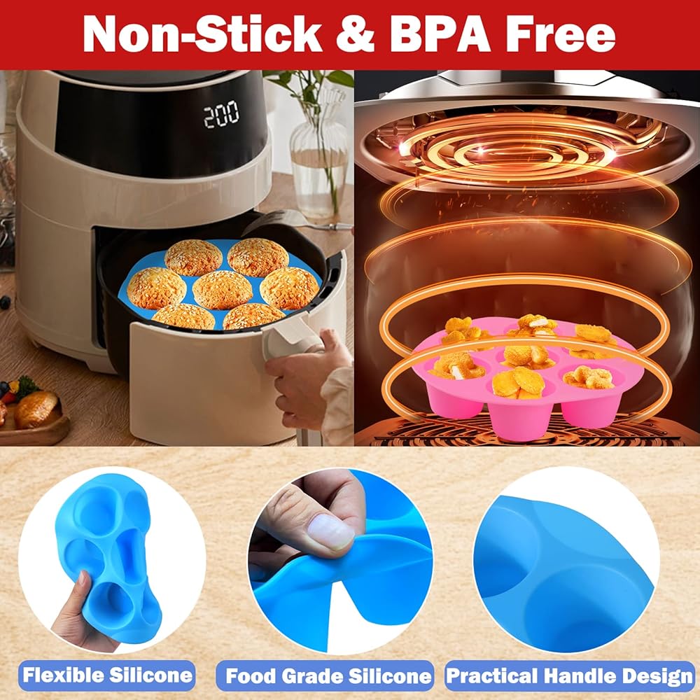 Silicone Air Fryer Muffin Pan, 2 Pcs Cupcake Tray Baking Mold,Reusable Non-stick Air Fryer Baking Pan, Air Fryer Accessories