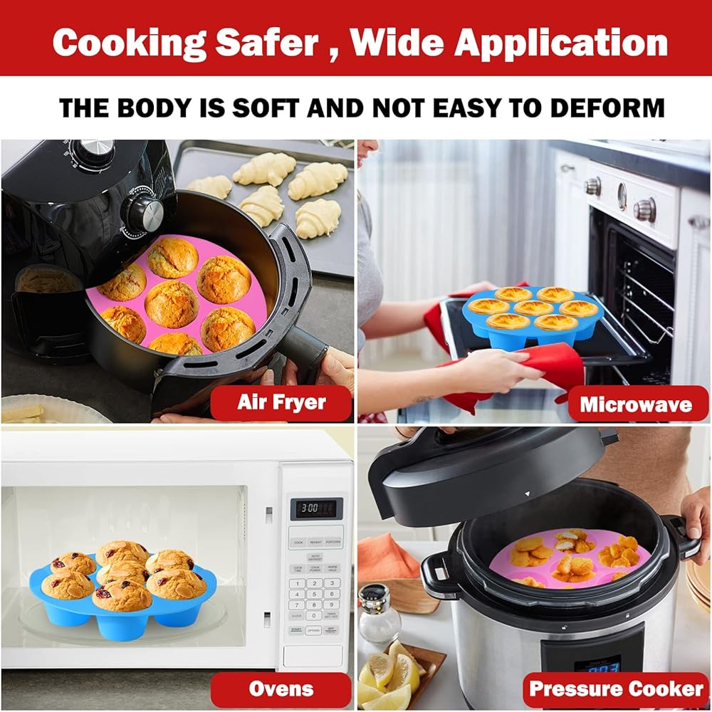 [Reusable] Reusable air fryer silicone pans can replace other disposable parchment paper and save you a ton of money. We are 7 cups, easier to remove from the air fryer than individual baking cups, also you can make many different types of food at once.