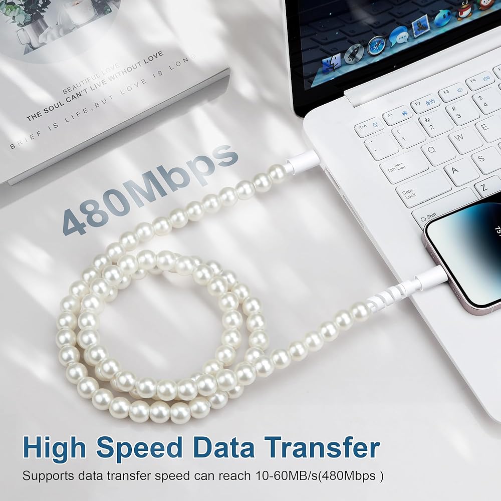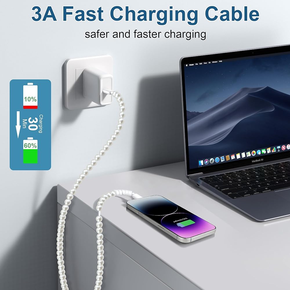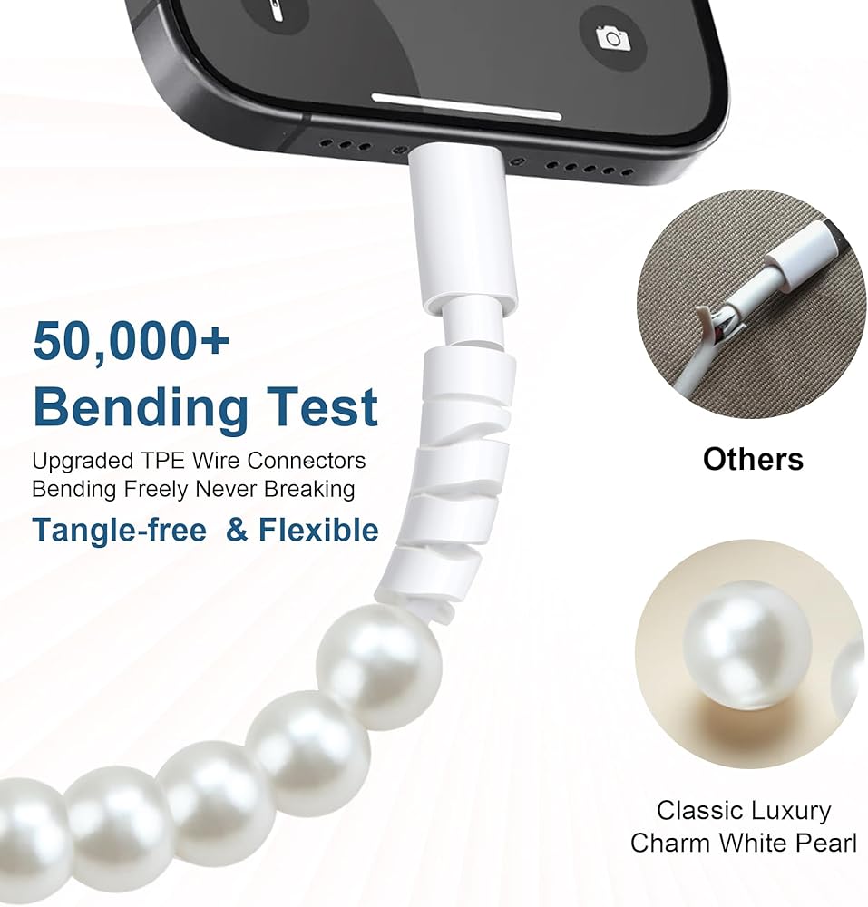 3.3FT Cute Charger Cable: With its stylish and cute appearance, this pearl for iphone charger cord is 3.3ft long allowing you to place your devices exactly where you need them for comfortable use while charging