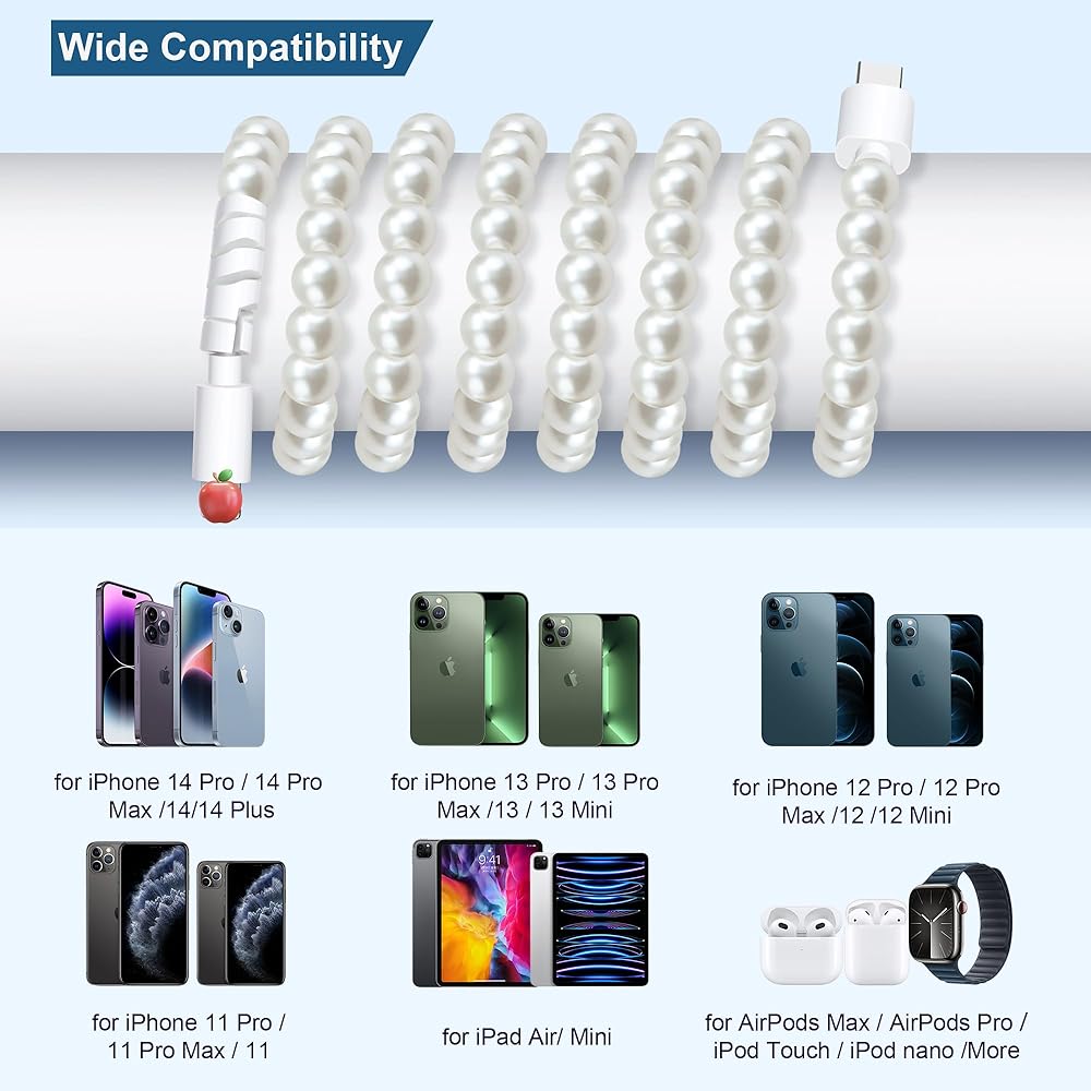 Universal Compatibility: This Pearl phone charging cable is compatible with iPhone 14/13/12/11/ XS Max/ XS/XR/ X/8/ 7/6/5, iPad Pro 5/4/3/2, iPad Air, Air 2, iPad mini 2/3/4/5, iPad 4th gen,iPod Touch 5th gen, etc