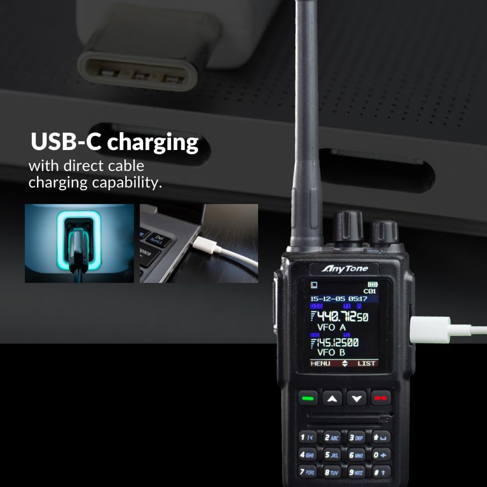 anytone AT-D168UV- Dual Band VHF/UHF DMR/ANALOG 5W Radio Handheld- بطاريات 2 ، وهما هوائيات متضمنة- 500 كيلو متر- شحن USB-C- بالإضافة إلى دعم كبير من Bridgecom!