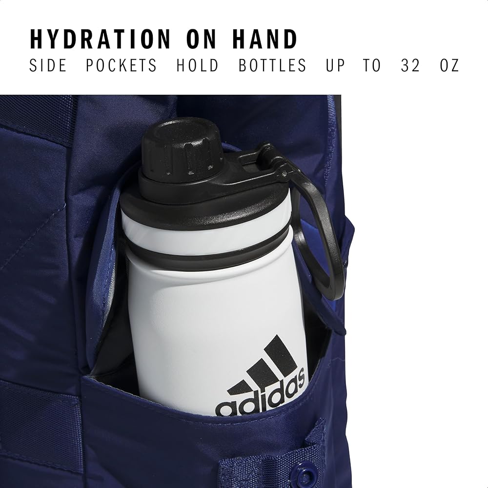 Two side water bottle pockets that fit up to 32 oz bottles