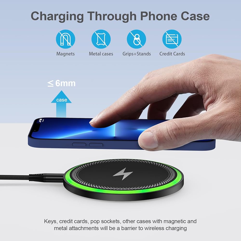 ◆Android Phone Wireless Charging Pad has 4 Charging Mode: 15W(Max)-10W-7.5W-5W