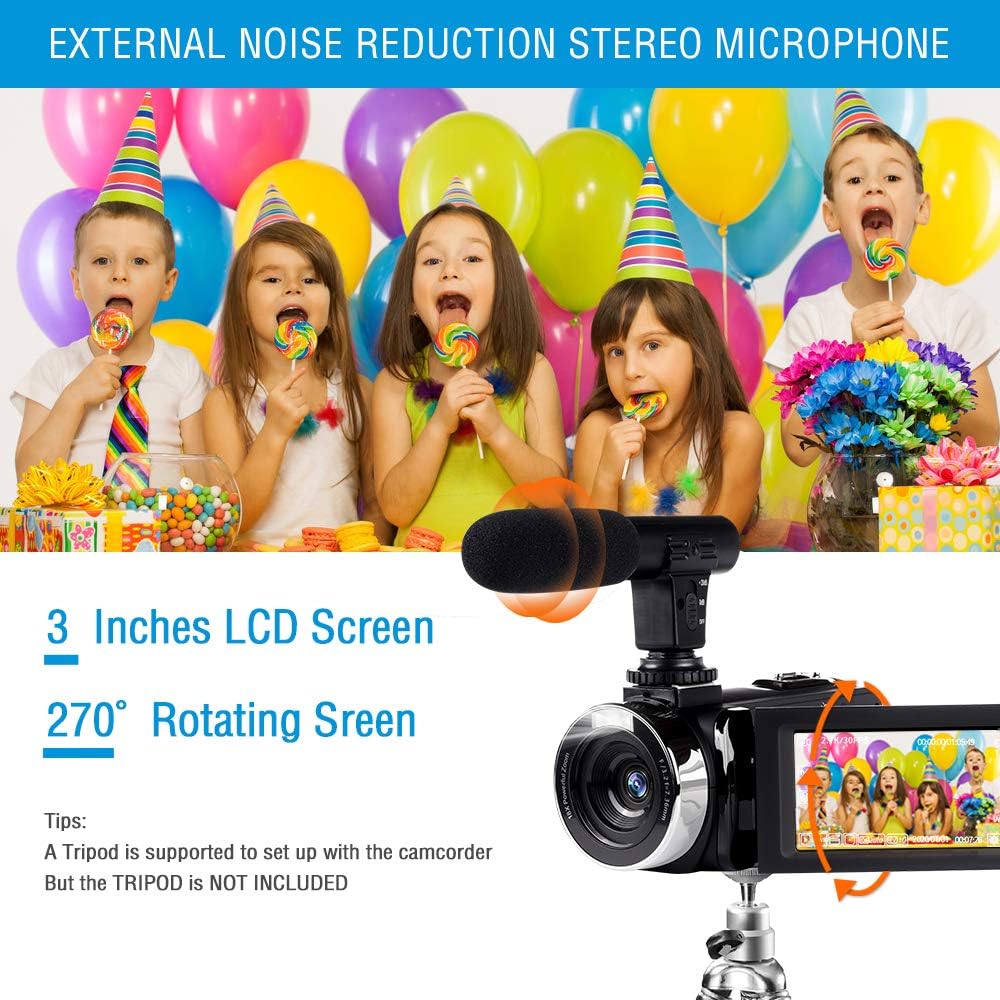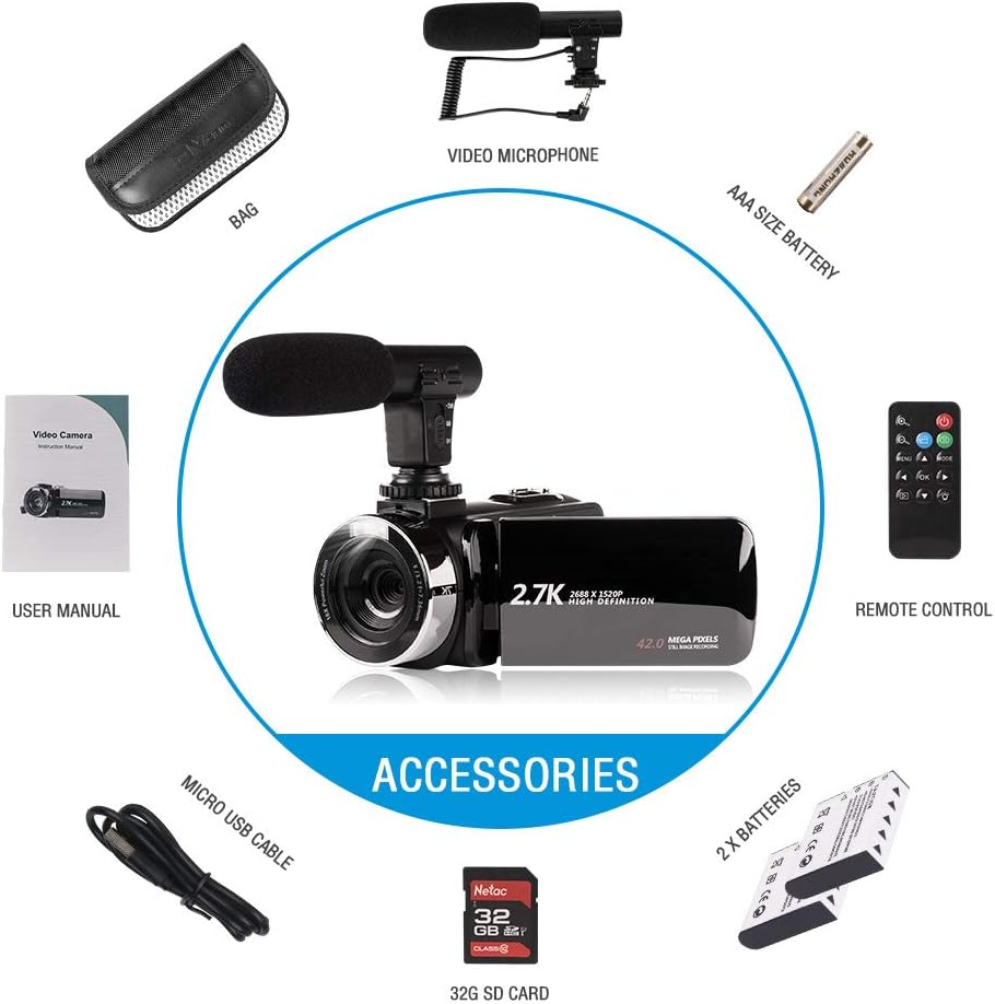 في موتال كاميرا فيديو مع ميكروفون، 2.7K HD 42.0 ميجابيكسل تكبير رقمي 18X 1080P مسجل فيديو يوتيوب، دوران 270 درجة شاشة 3.0 انش مع بطاريتين متضمنة بطاقة SD 32GB