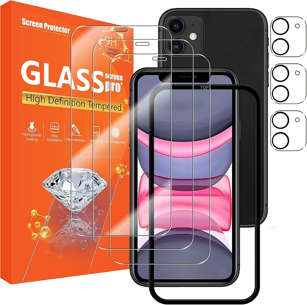 seninhi [3+3 عبوات] لهاتف Apple iphone 11 (6.1 بوصة) واقي شاشة 3 عبوات + واقي عدسة الكاميرا 3 عبوات، واقي شاشة من الزجاج المقسى iphone11 [مع إطار سهل التركيب] [صلابة 9H] [مضاد للخدش] [خالٍ من الفقاعات] - شفاف