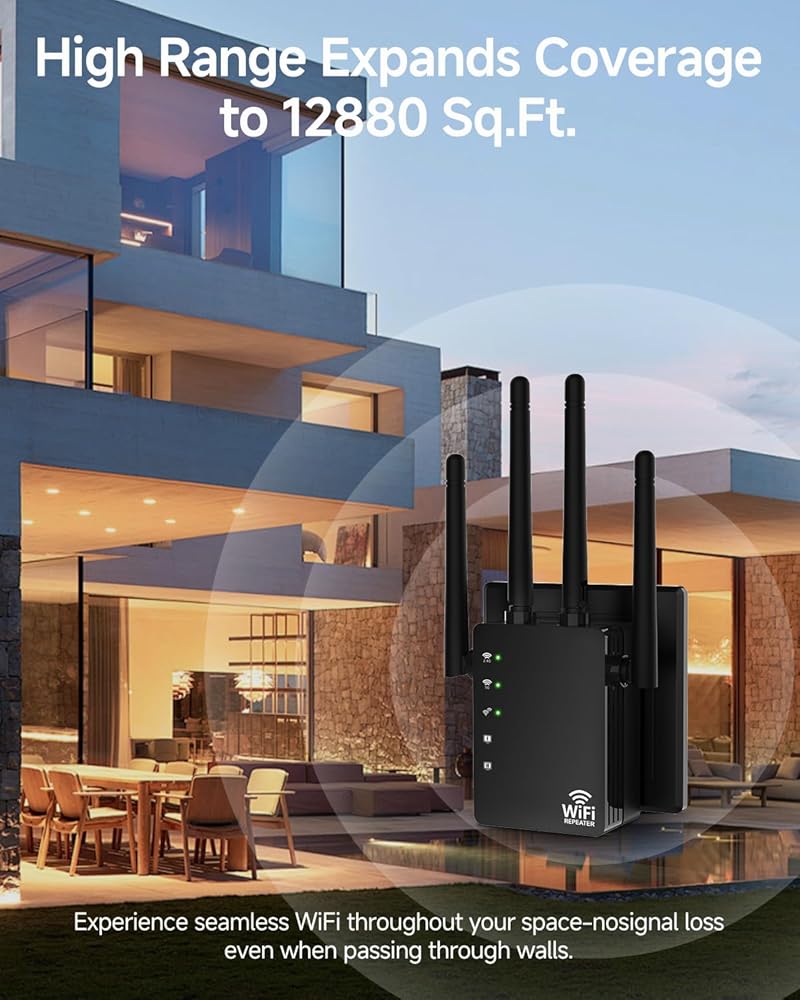 Dual Band 5GHz/2.4GHz WiFi Extender, WiFi Booster, WiFi Extender Signal Booster, Covers 12880 Sq.ft, Supports 105 Devices, Wireless Signal Booster for Home