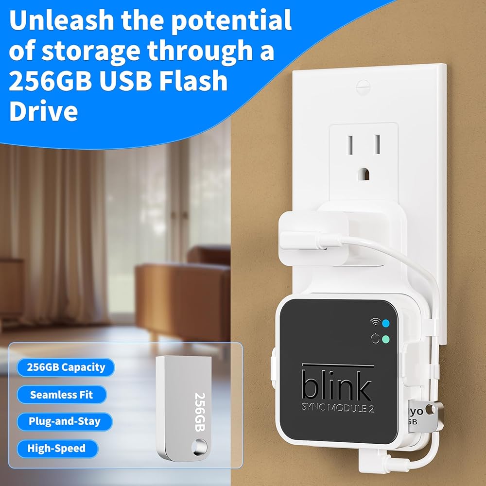 مجموعة Blink Sync Module 2 مجموعة محرك حائط مع محرك أقراص فلاش USB 256GB لتخزين الفيديو المحلي Blink (لم يتم تضمين وحدة SYNC MODULE 2 BLINK) 2)
