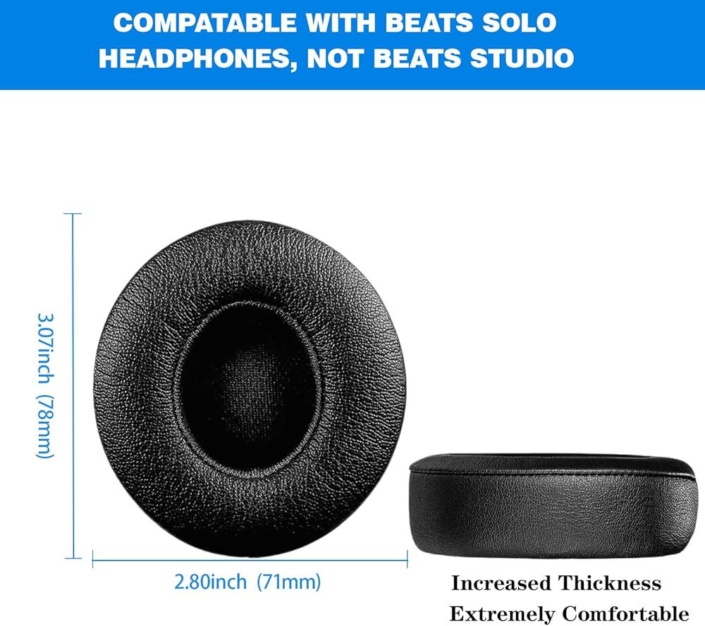 Beats Solo 2/3 Wireless Ear Pads - with Protein Leather and Memory Foam Only for Beats Solo 2.0/3.0 Wireless On-Ear Headphones(Black)