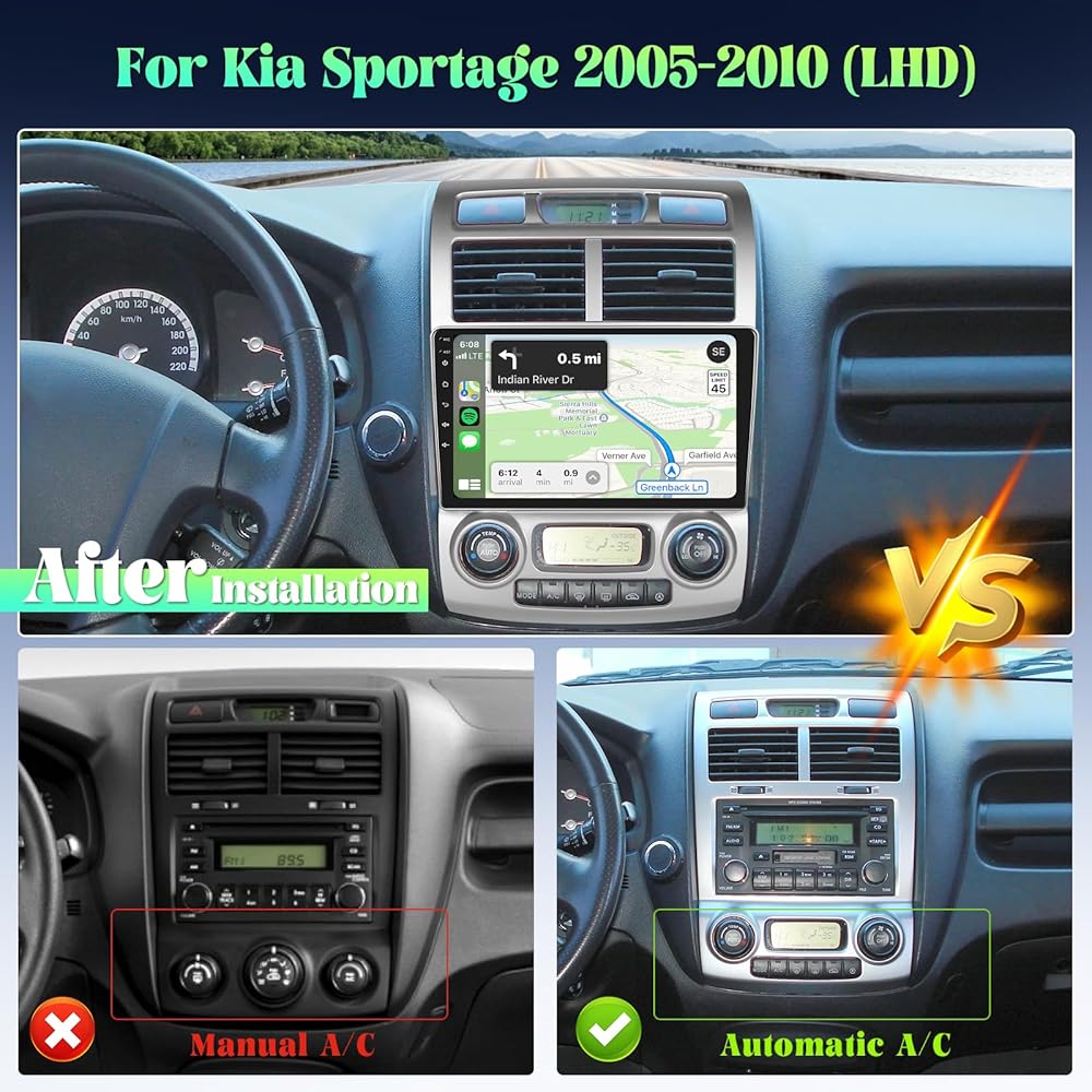 Roinvou 2+64G CAR Radio for Kia Sportage 2005 2006 2007 2008 2008 2010 ، 9 "شاشة تعمل باللمس مع Carplay Android Auto Mirror Link WiFi Bluetooth FM RDS Camera النسخ الاحتياطي