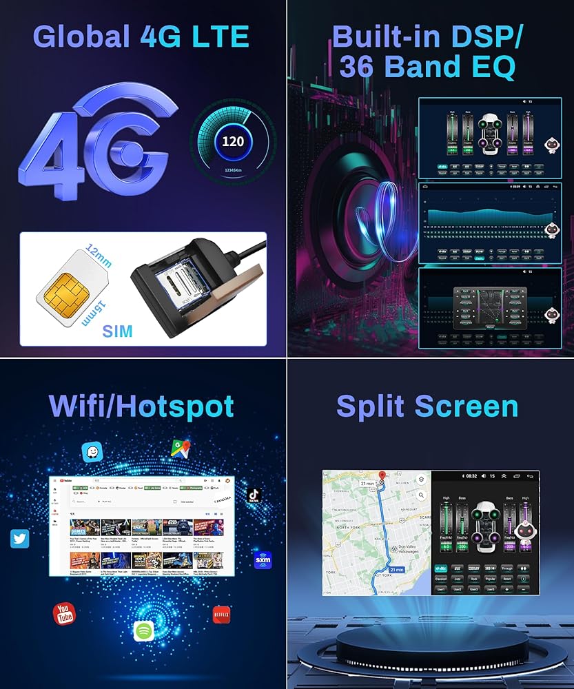 5.【GPS & WiFi & 5.0Bluetooth & FM Radio】Our car play radio built-in GPS receiver and WiFi connectivity, enabling both online and offline navigation, internet browsing, and access to various applications such as GPS Maps, YouTube, TikTok, Spotify, and more. Stay connected while driving with incoming and outgoing calls, address book sync, and mobile phone music playback. Additionally, transmit music to your car stereo through FM and enjoy your favorite radio stations