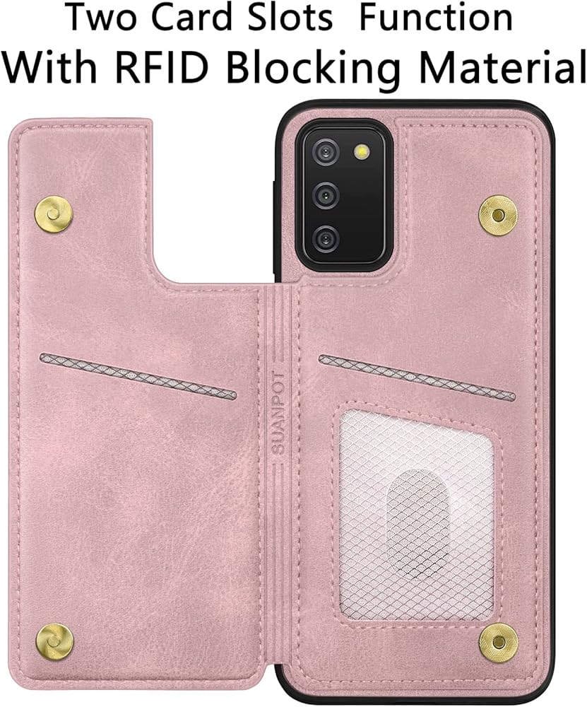 Suanpot 【RFID حظر ل Samsung Galaxy A02S Wallet Case مع حامل بطاقة الائتمان ، Flip Book Pu Leather Case Cover Women Women Men for Samsung A02S Case Rose Gold
