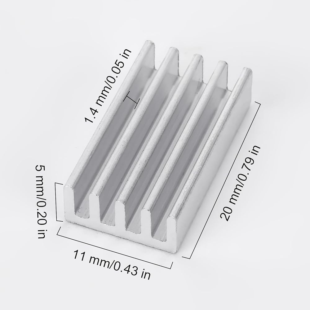 Size:20x11x5 mm / 0.78x0.43x0.19 inch (L*W*H);Please check the size make sure that the size of the heat sink fits that of your component