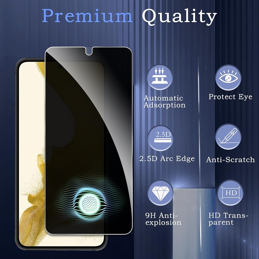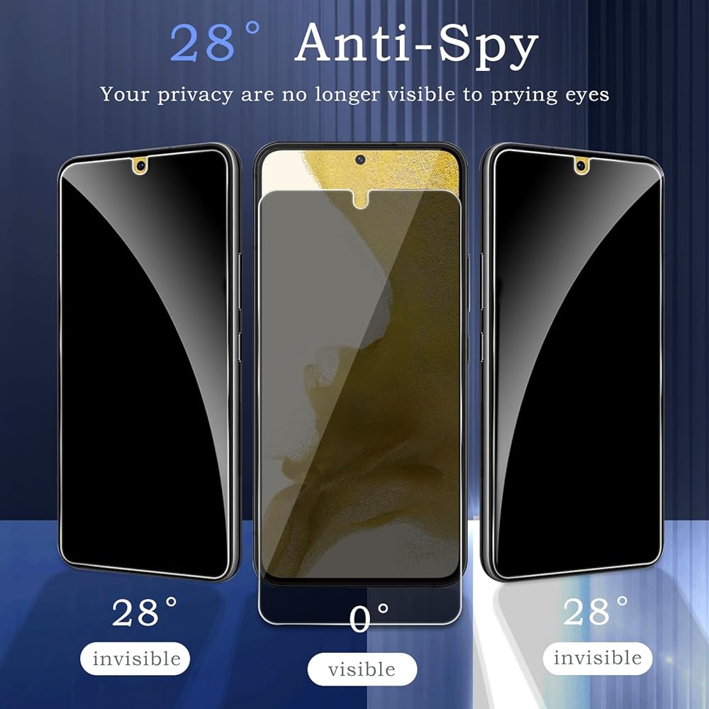 [Compatible Model] screen protector size is specially designed for Samsung Galaxy S22 Plus, include 2 Pack privacy screen protectors and cleaning kit.