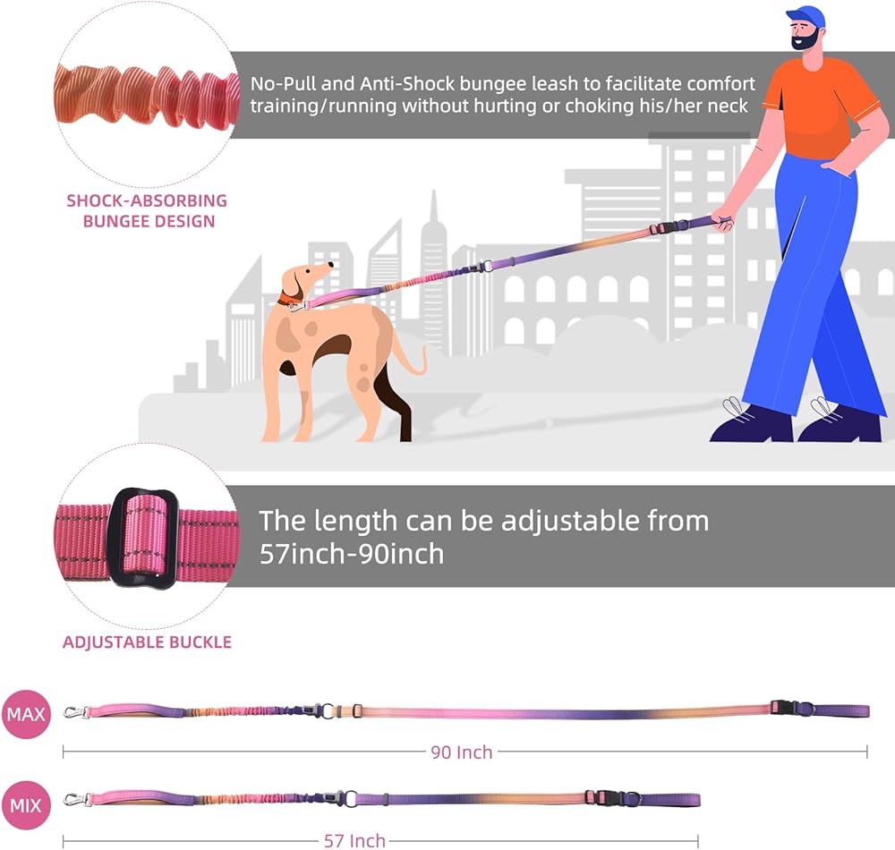 【تمديد مقود الكلب Bungee 4ft (3'8 "-4'9") و 6ft (5'0 "-6'7"). 1 "عرض مقود الكلب الكلب يحسن من السيطرة والوسادة ، يمكن أن يناسب الرصاص القوي على طراز Bungee Styh مجموعة كبيرة ومتنوعة من أحجام الخصر ويمكن تعديلها في الملاءمة حول الخصر. إعادة على المشي.