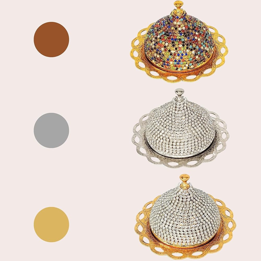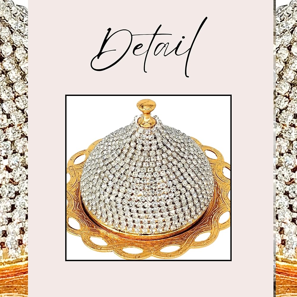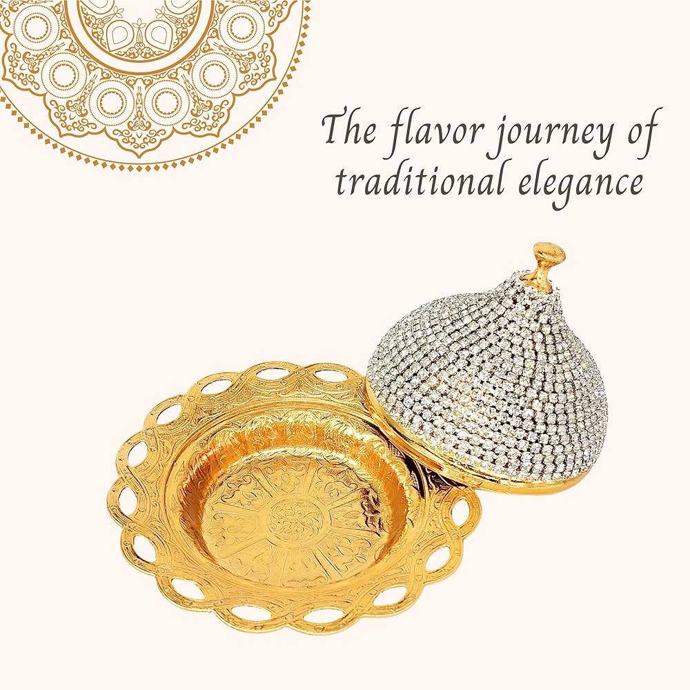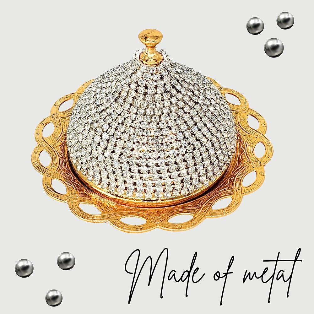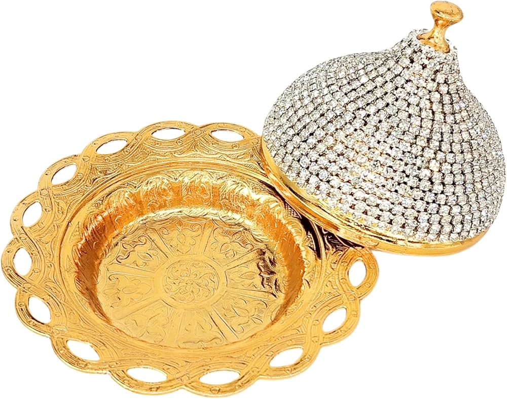 Turkish Delight Small Zamac Bowl 3.54 x 4.72 x 4.72 inches/Ottoman, Greek, Arabic, Turkish Motifs/Confectionery, Fruit Serving Bowl/Stone Embroidered Turkish Delight, Tea, Decorative (Gold)
