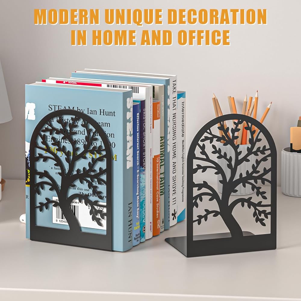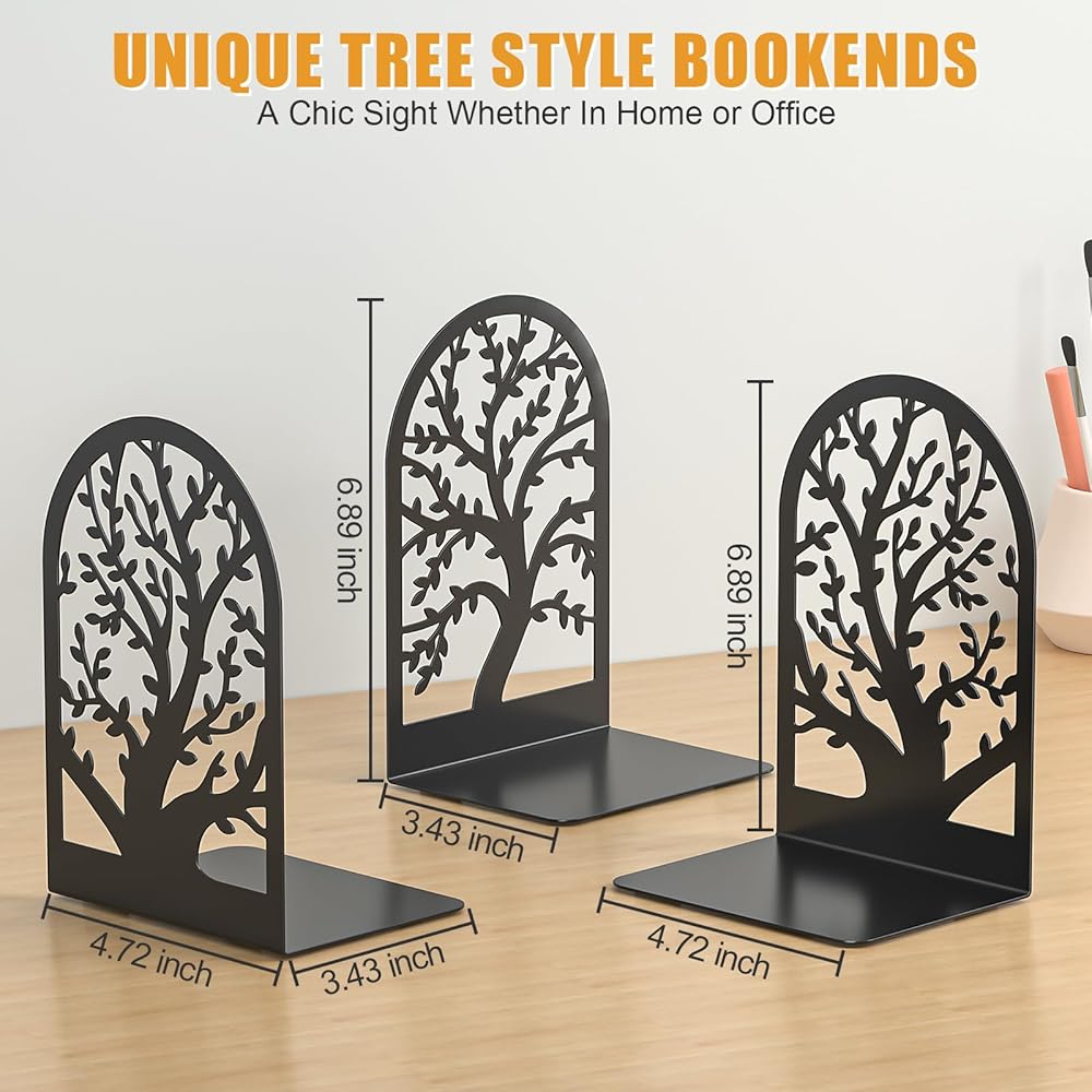 Vfine Bookends 3 أزواج ، نهاية كتاب زخرفي ، Bookends للأرفف ، نهايات الكتب للرفوف ، غايات كتاب سدادة الكتب لعقد الكتب ، نهايات Black Metal Tree الفريدة لمكتب المنزل