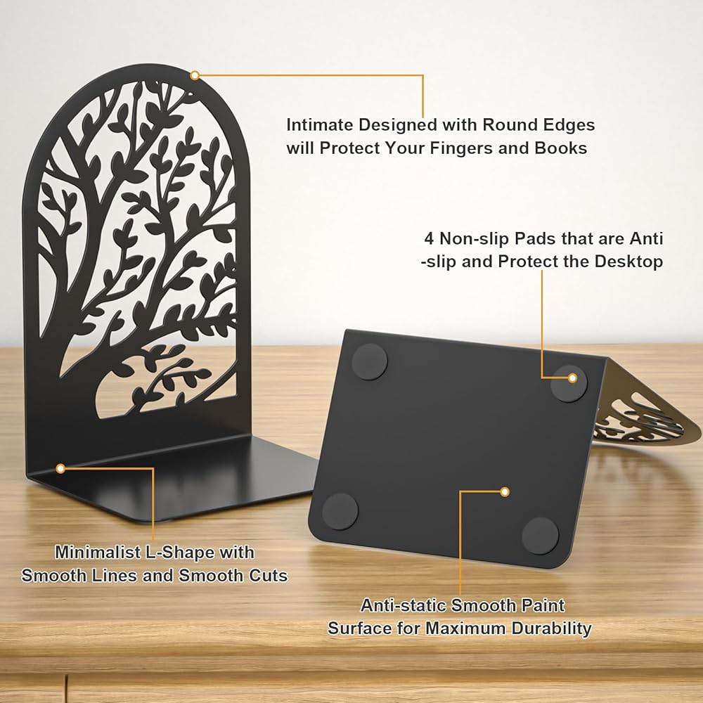 التفاصيل المدروسة - كل نهاية كتاب لها نمط شجرة فريد ورائع. يتم تقريب زوايا المركزين والأوراق مملّة لتقليل حدة الفوقية ، وحماية الكتب والأيدي. يمكن للوسادات غير المنقولة في الجزء السفلي من Bookends أن تمنع Bookends بشكل أفضل من الانزلاق الجانبي وأيضًا حماية الجدول من الخدوش.