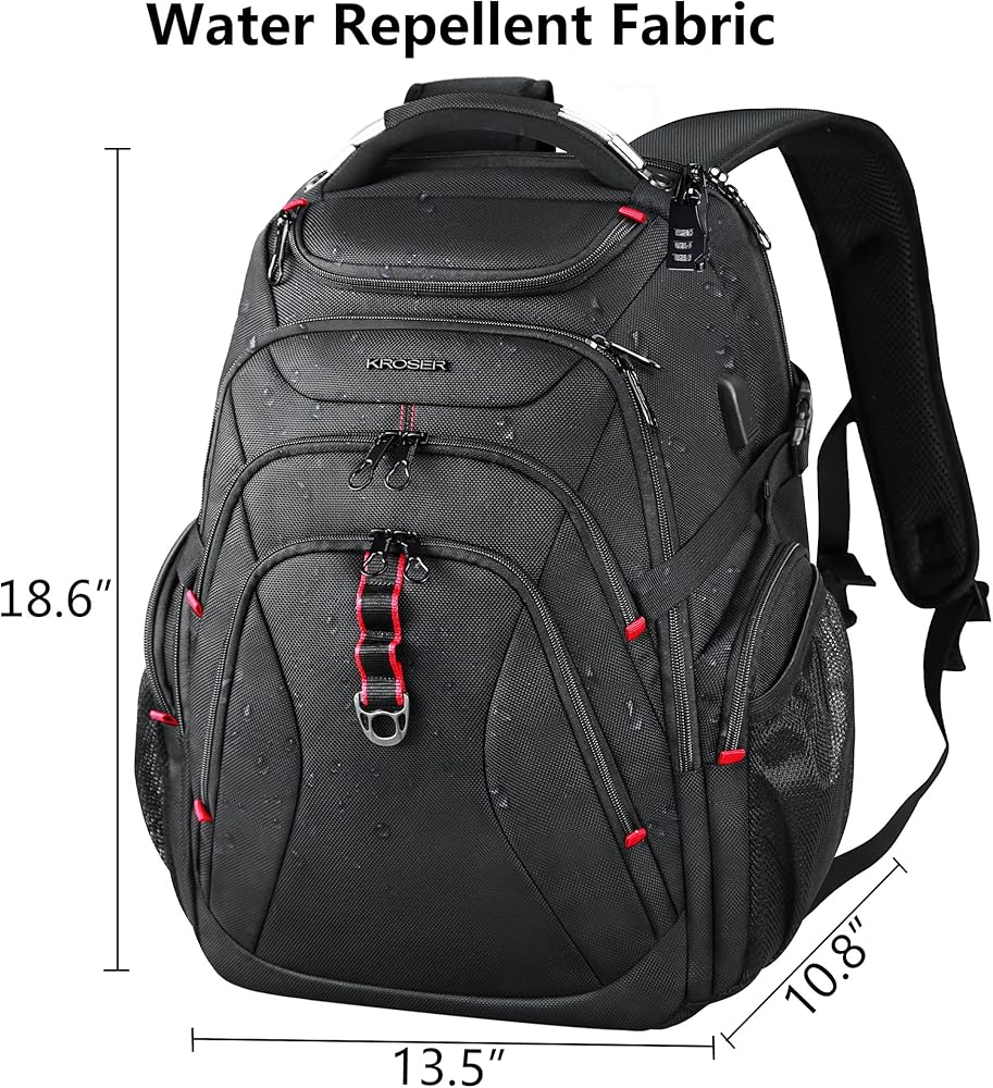 مادة متينة: حقيبة الظهر الأنيقة للكمبيوتر المحمول هذه مصنوعة من نسيج باليستي عالي الجودة طارد للماء؛ الأبعاد: 18.6 بوصة × 13.5 بوصة × 10.8 بوصة، تناسب كمبيوتر محمول يصل حجمه إلى 17.3 بوصة؛ الوزن: 3.08 رطل