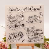 【Design:】Spring Rain Flowers Greeting Words Clear Stamps with Sentiments, Blessing Words Pattern Rubber Silicone Transparent Seal Stamps