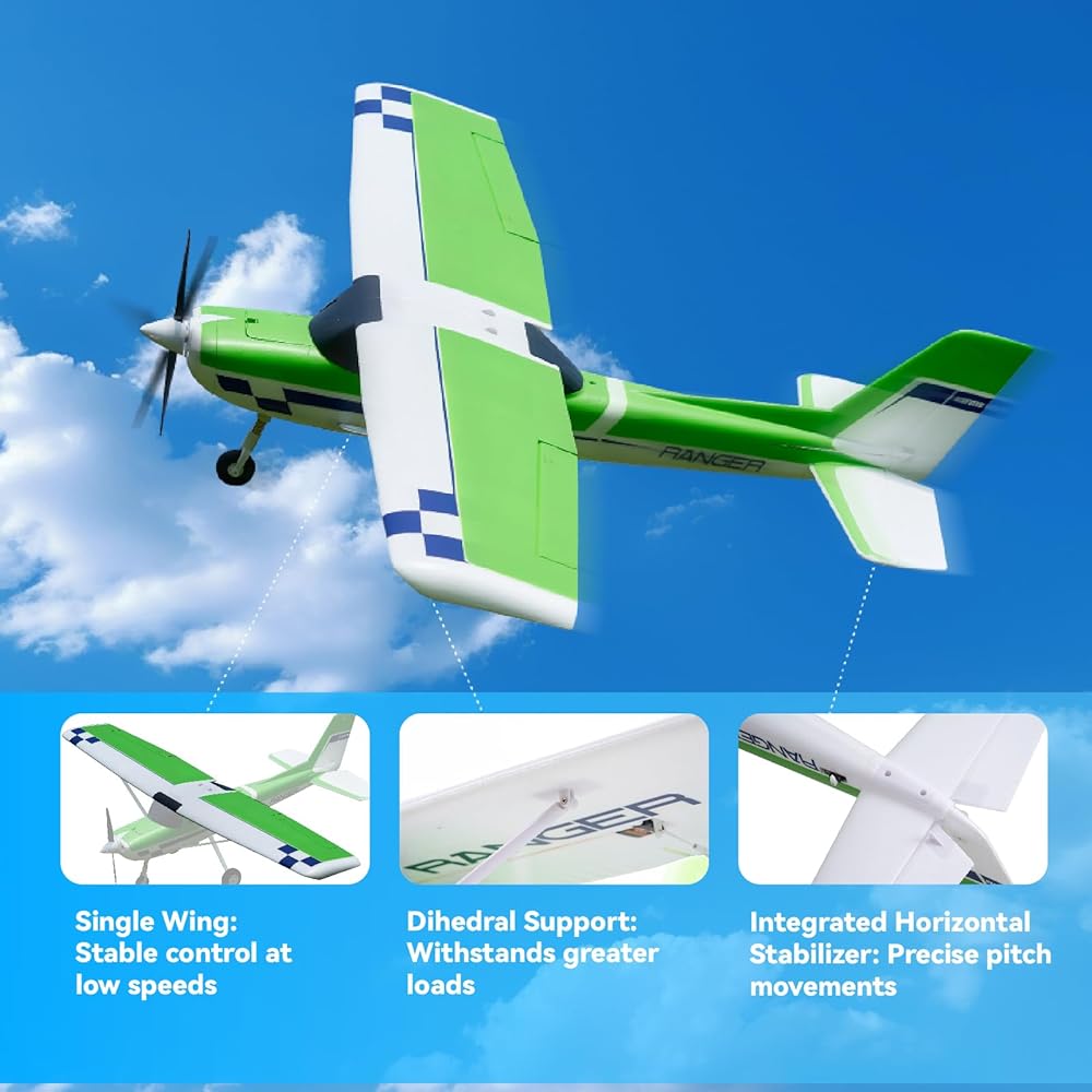 【Ranger للمبتدئين 💯】 طائرة RC المثالية للمبتدئين! من السهل الطيران ، من السهل التعلم! هذه الطائرة RC بسيطة للتحكم ، مما يقلل بشكل كبير من المساحة المطلوبة للإقلاع - فقط 3 أمتار هو كل ما تحتاجه لرفع فرص الطيران في مواقع مختلفة. بفضل تصميمها وهيكلها المتميز ، تحافظ هذه الطائرة على استقرار عالي حتى أثناء الرحلات الجوية منخفضة السرعة ، مما يجعلها مثالية لممارسة المهارات في مجموعة واسعة من البيئات الطيران.