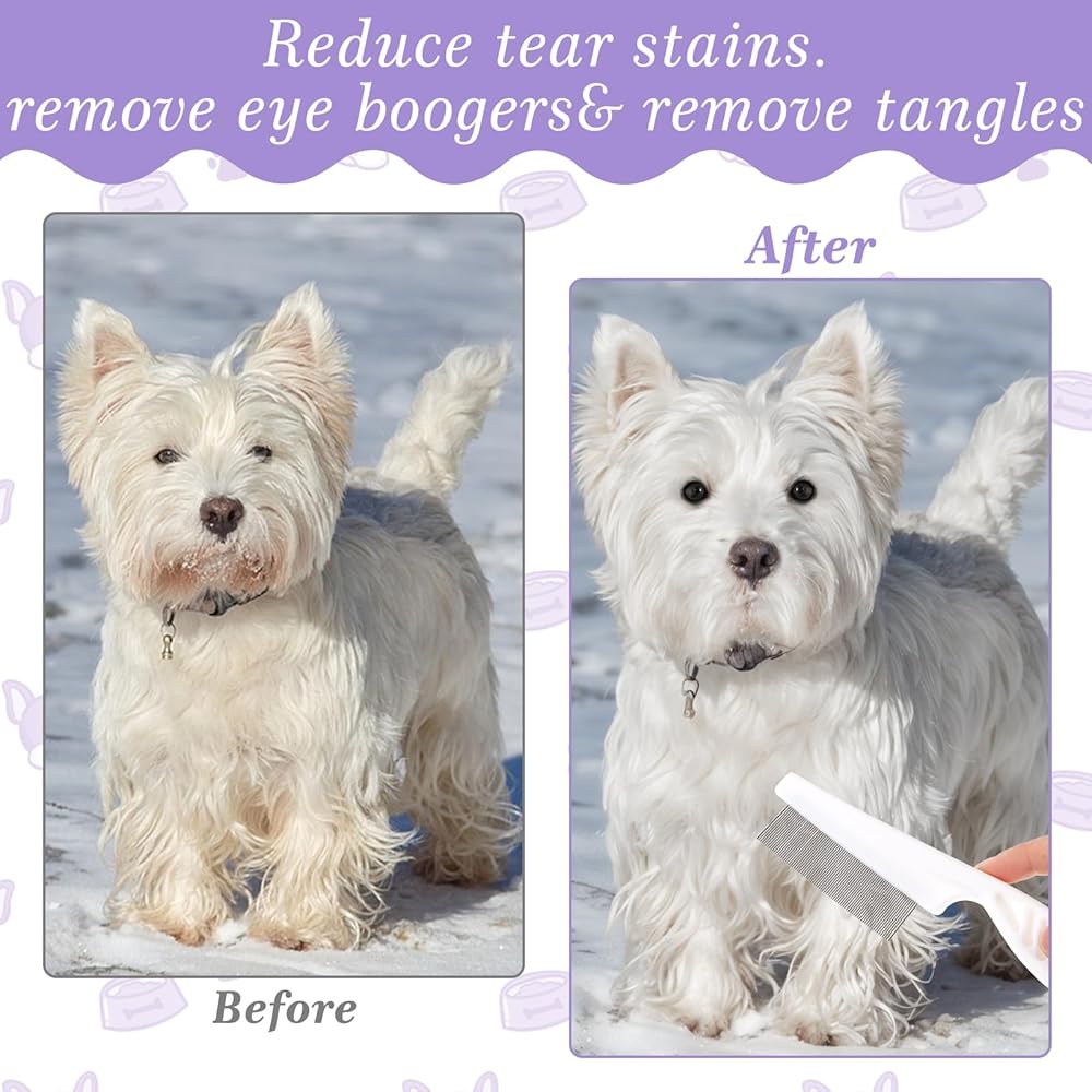 【Ergonomic and safe design】The ergonomic handle provides a comfortable grip, making fine tooth comb easy to use for extended periods. The rounded pin ends are gentle on your pet's skin, preventing snagging and injuries. This dog tear stain remover is suitable for dogs and cats of all sizes and breeds.