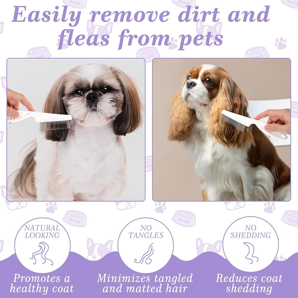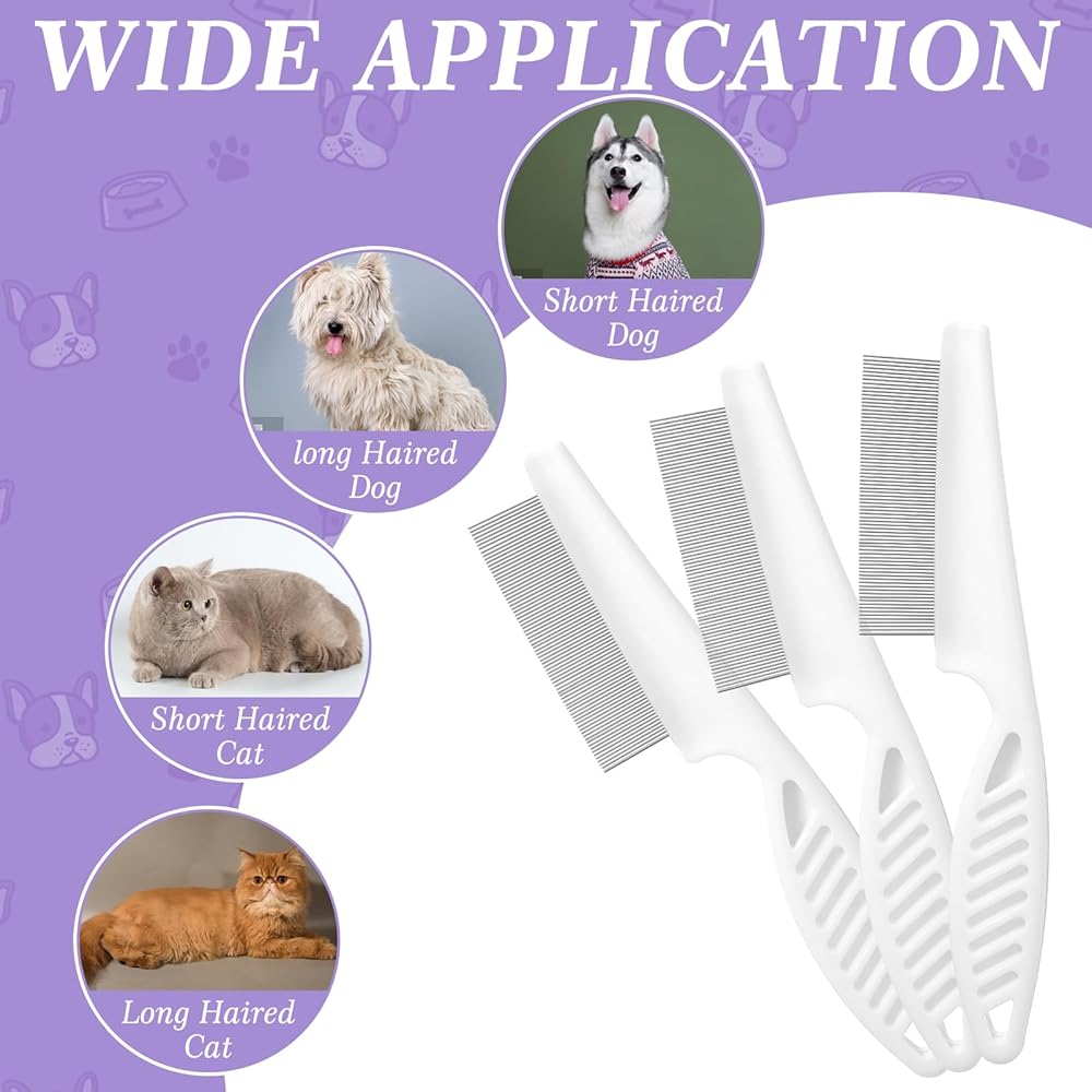 【Multifunctional combing tool】This flea comb for cats is not just for dogs but also suitable for cats and other small animals. Our flea comb for dogs effectively removes dandruff, lice, and loose hair, promoting overall fur and skin health. The cat flea comb is perfect for various breeds, including Golden Retrievers, Poodles, Beagles, and Chihuahuas.