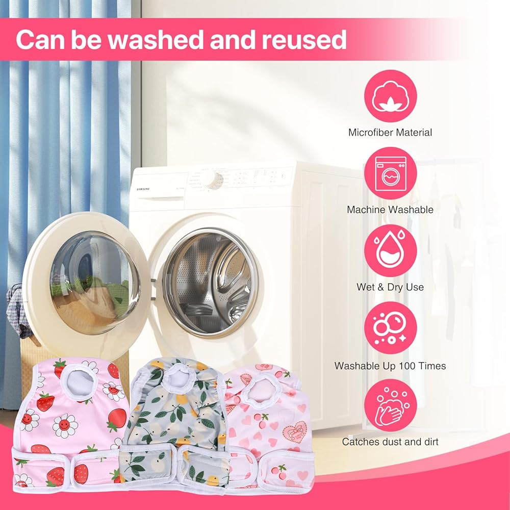 Convenient Pack: With 3 reusable dog diapers in each pack, you'll always have a spare on hand for emergencies or daily use. Stock up on our pet diapers to keep your furry friend comfortable and your home clean and odor-free.