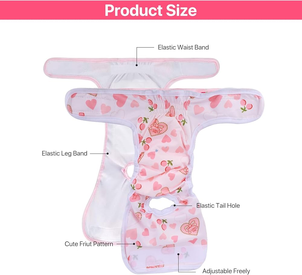 Premium Material: Our dog diapers female are made from premium polyester material, offering exceptional absorbency to keep your pet dry and comfortable. The breathable fabric ensures proper ventilation, while the soft texture provides comfort for your furry friend.